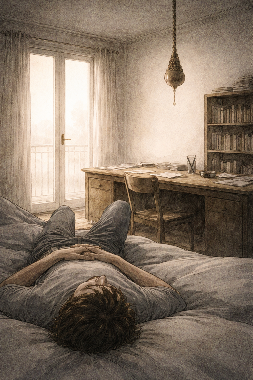 Je suis resté un long moment je crois, allongé ; absent ; juste à m’étirer de temps en temps. Bien ; dans les draps frais.
